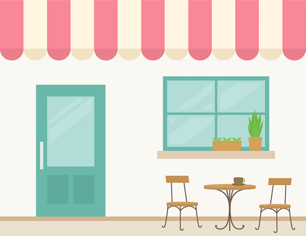 - 喫茶店・・・コーヒーなどの飲み物や、軽食を出す飲食店のこと。